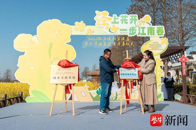翠微君服务驿站与就业实践基地也同步揭牌,标志着苏州城市学院与景程文旅的校地合作迈入新阶段。双方将围绕文旅服务、便民实践、公益关怀等领域,孵化特色志愿服务项目,同时为青年学生提供实习实训、就业对接等全方位支持,让青春在田野间闪光。